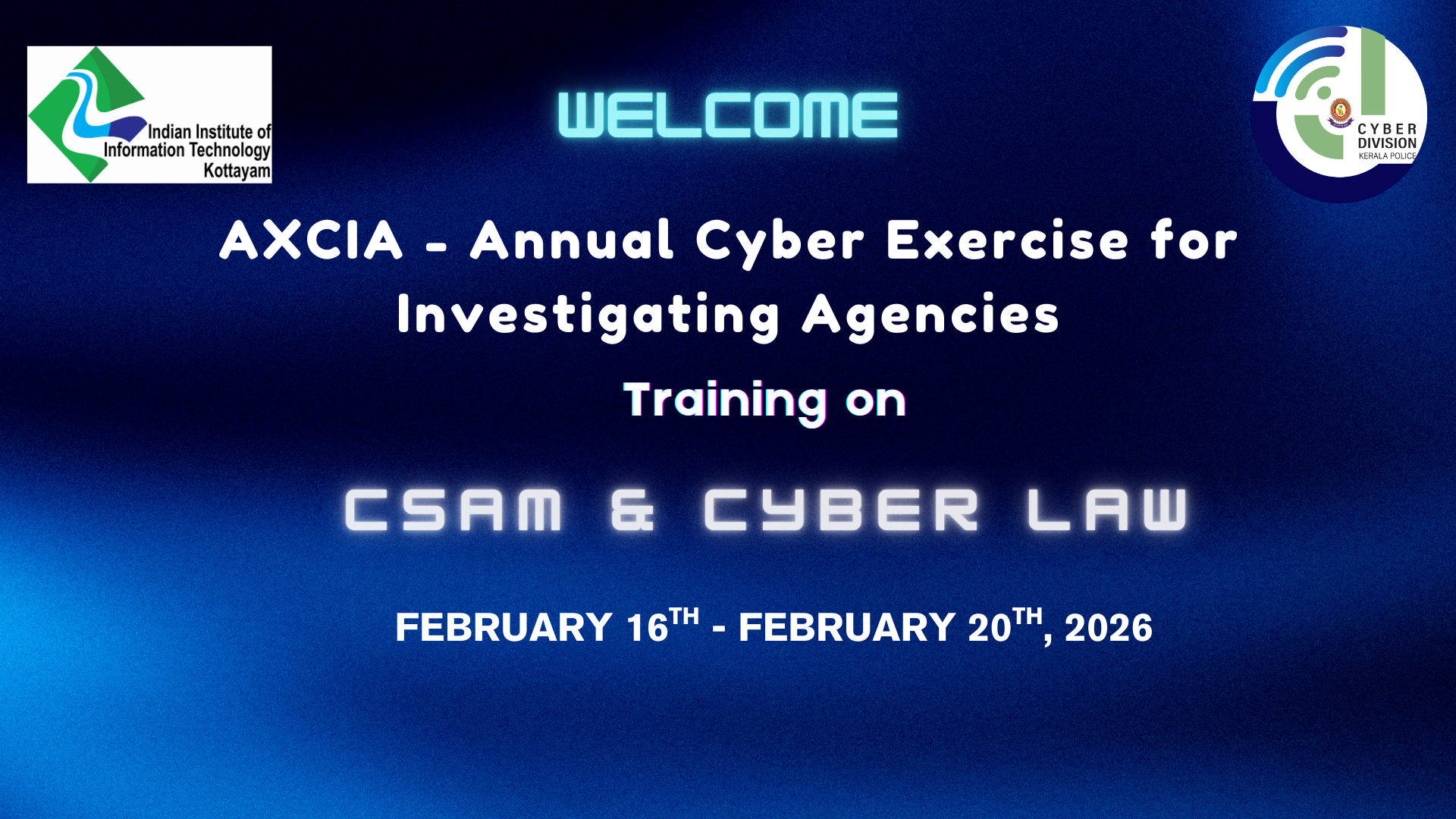 AXCIA-CYBER-26 – Batch 5: CSAM & Cyber Law is part of the AXCIA – Annual Cyber Exercise for Investigating Agencies, jointly organised by the Kerala Police (Cyber Operations Division) and the Indian Institute of Information Technology Kottayam.
